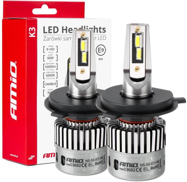 AMiO Led Autólámpák k3 H4/h19 Sorozat 12v 6000k Canbus Amio-03682