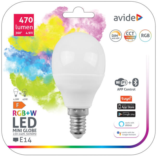 Avide Smart LED Mini Globe 4.9W E14 RGB+W WIFI + BLE APP Control (ASMG14RGBW-4-9W-WIBLE)