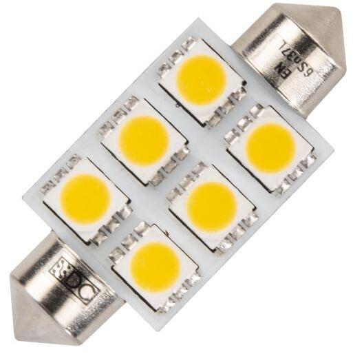 Energiatakarékos LED izzó 6LED SMD elegendő belső világításhozA David Communication LED izzó Sufit foglalattal energiatakarékos, és lakókocsik, lakóautók és hajók belső használatára tervezték. A hosszú élettartamú LED-technológiának és a meleg fehér fényszínnek köszönhetően kellemes megvilágítást biztosít túlzott energiafogyasztás nélkül. Kiváltja a hagyományos 10 W-os halogén izzókat, élettartama pedig a LED technológiának köszönhetően sokkal hosszabb . Ennek köszönhetően a LED izzók ellenállnak a gyakori be- és kikapcsolásnak, és gyakorlatilag hőmentesek, így védik a jármű belsejét és energiát takarítanak meg. A David Communication 6LED SMD modul, 12 V sufit:6-os típusú SMD foglalat mennyezet. Modern SMD LED technológia a hatékony és stabil teljesítmény érdekében. Meleg fehér szín (3000 K). Kellemes és természetes megvilágítást biztosít a hangulatos légkörért. 125°-os sugárzási szög. A széles sugárzási szög egyenletes megvilágítást biztosít a belső térben. 100 lumenes fényáram. Elégséges a helyiségek megvilágításához, minimális energiafogyasztás mellett. Az alacsonyteljesítmény jelentős energiamegtakarítást jelent a hagyományos izzókhoz képest. Egy 15-20 W-os halogén izzót helyettesít. Tartósság. A LED-ek ellenállnak a gyakori be- és kikapcsolásnak, meghosszabbítva ezzel az izzó élettartamát. Nem tartalmaz higanyt, így könnyen újrahasznosítható és védi a környezetet. Dimmelhető a fényerősség szükség szerinti beállításához. A LED izzó paraméterei David Communication 6LED SMD modul, 12 V sufit:Típus: 6 SMDaljzat: mennyezetszín: meleg fehér (3000 K)Sugárzási szög: 125°fényerőszabályozás: igenenergiahatékonysági osztály: FLED: igenfényáram lumenben kifejezve: 100teljesítmény: 1 W15-20 W-os halogénteljesítményt helyettesítfeszültség: 10-30 Vhossz: 37 mmátmérő: 16 mmsúly: 16 gcsomagméret: 19,9 x 9,5 x 0,6 cmA LED izzókat nem tartalmazza a jármű. Nincs CAN busz támogatás. A járművezérlő egységek nem kompatibilisek.