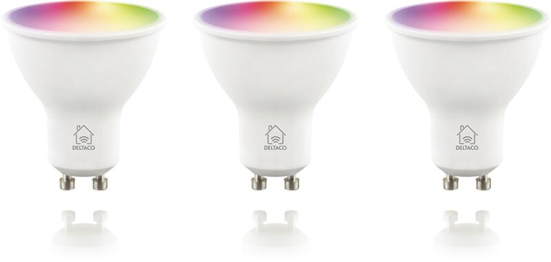 DELTACO Smart Led Spot Izzó 5W 470Lm 2700-6500K Gu10 - RGB, 3 db (SH-LGU10RGB-3P)