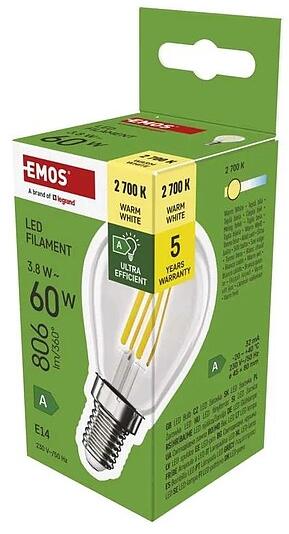 EMOS LED izzó Filament Mini Globe / E14 / 3, 8 W (60 W) / 806 lm / meleg fehér (ZF1A42)
