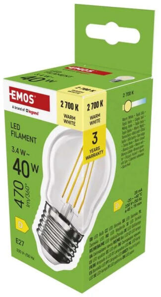 EMOS LED izzó Filament Mini Globe E27/3, 4W (40W)/470lm/Meleg fehér ZF6D22 (EMOS-ZF6D22)