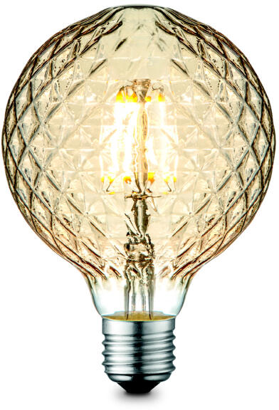 LED Fényforrás dekoratív borostyán színű üveg búrával. fényerő-szabályozható. Ø:95, H:140, tartozék: 1xE27 LED 4W 230V, 380lm, 2700K