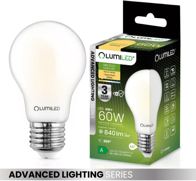 Lumileds E27 A60 LED izzó 4W = 60W 840lm 3000K meleg 360°-os üvegszál ALS LUMILED (LUMLEDJ0205)