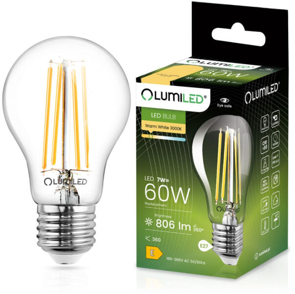 Lumileds E27 A60 LED izzó 7W = 60W 806lm 3000K 360° LUMILED izzószál (LEDZARMI402)