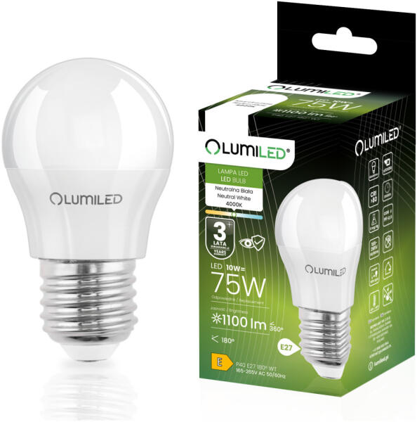 Lumileds E27 LED izzó KIS GOMBÓC 10W = 75W 1100lm 4000K Semleges Színű CCD Fehér LUMILED