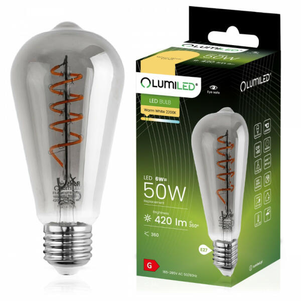 Lumileds EDISON E27 ST64 LED izzó 6W = 50W 420lm 2200K 360°-os izzószál LUMILED (LEDZARMI870)
