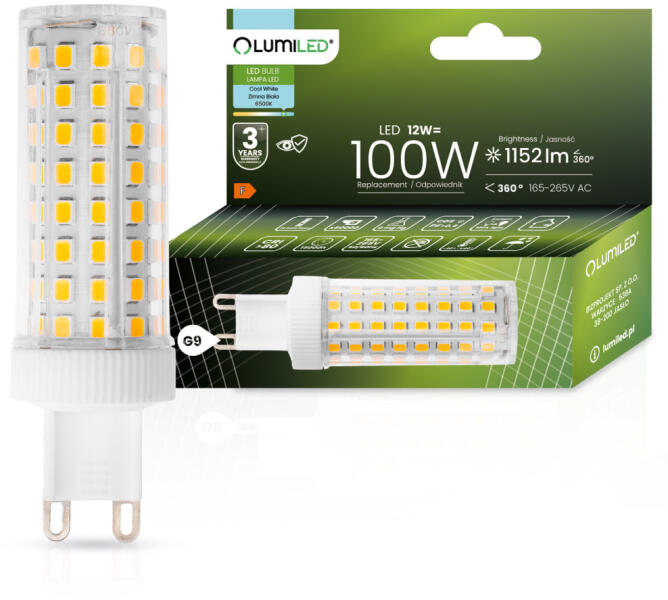 Lumileds G9 LED izzó KAPSZULA 12W = 100W 1152lm 6500K Hideg 360° LUMILED (LEDZARMI096L)