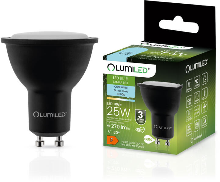 Lumileds GU10 LED izzó 3W = 25W 270lm 6500K Hideg 120° Fekete LUMILED (LUMLEDF0213)