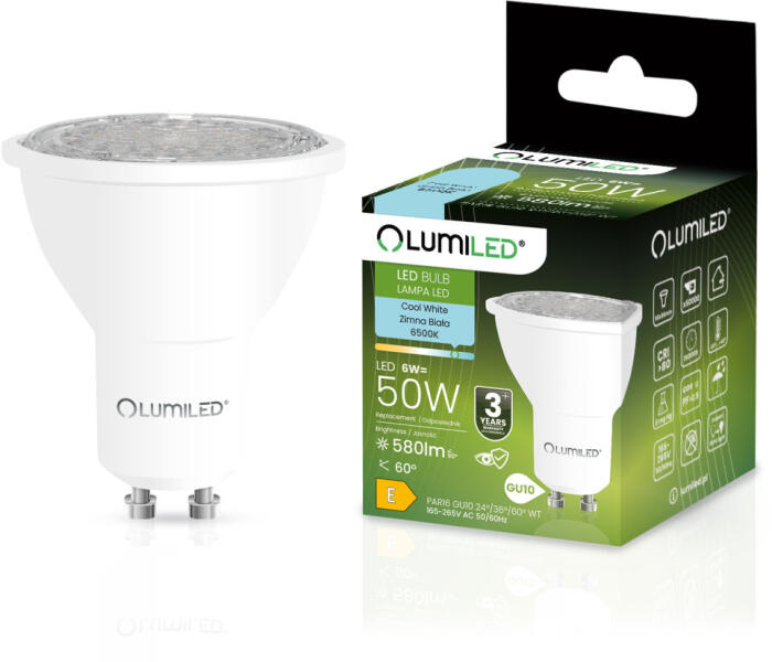 Lumileds GU10 LED izzó 6W = 50W 580lm 6500K hidegen állítható 24° 36° 60° LUMILED (LUMLEDF2024)