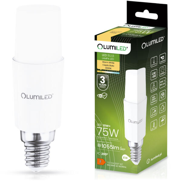 Lumileds LED izzó E14 10W = 75W 1055lm 3000K meleg fényű rúd LUMILED