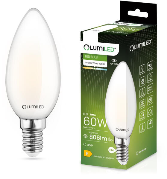 Lumileds LED izzó E14 B35 7W = 60W 806lm 4000K Semleges 360° Izzószál LUMILED