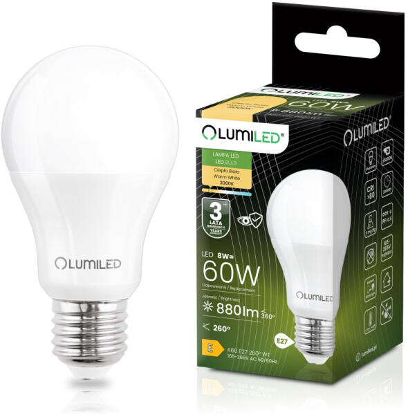Lumileds LED izzó E27 A60 8W = 60W 880lm 3000K Meleg 260° LUMILED (LUMLEDJ0009)