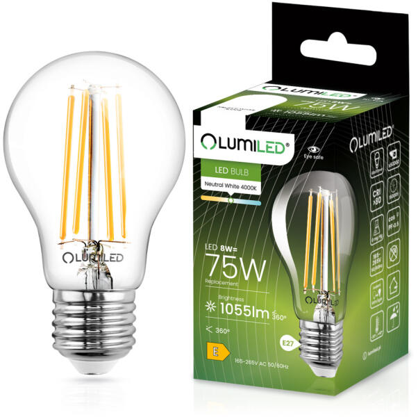 Lumileds LED izzó E27 A60 8W = 75W 1055lm 4000K Semleges 360° Izzószál LUMILED