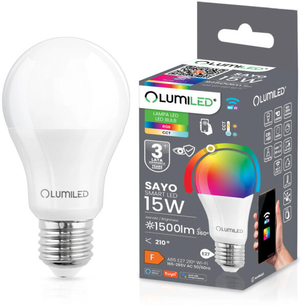 Lumileds LED izzó E27 A65 15W = 100W 1500m RGB CCT szabályozható fényerejű intelligens TUYA WiFi SMART SAYO LUMILED (LUMTUY0014)