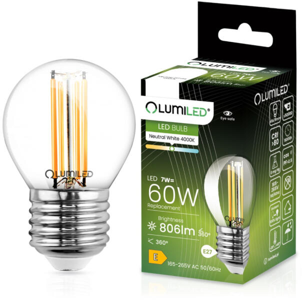 Lumileds LED izzó E27 P45 izzószálas 7W = 60W 806lm 4000K semleges 360° LUMILED