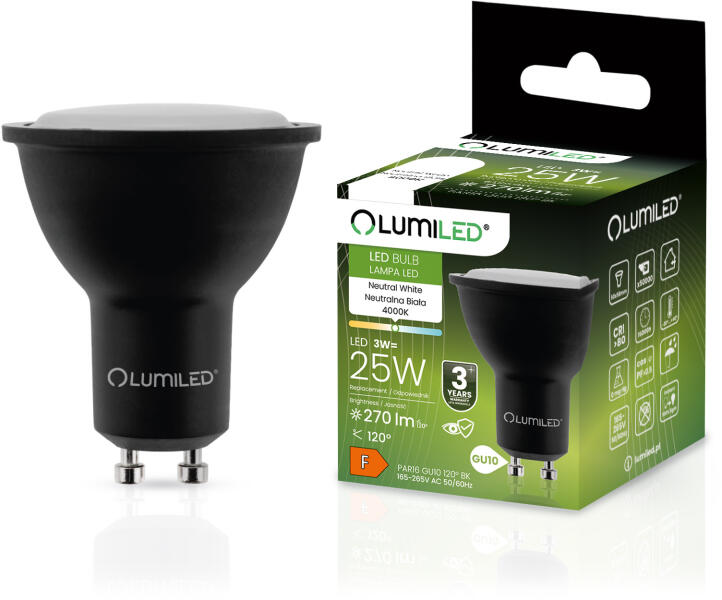 Lumileds LED izzó GU10 3W = 25W 270lm 4000K Semleges 120° Fekete LUMILED