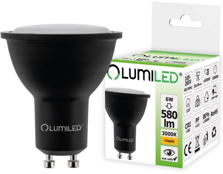 Lumileds LED izzó GU10 6W = 60W 580lm 3000K Meleg 120° Fekete LUMILED (LEDZARMI013B)