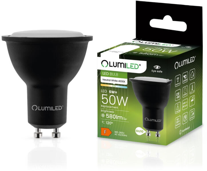 Lumileds LED izzó GU10 6W = 60W 580lm 4000K Semleges 120° Fekete LUMILED