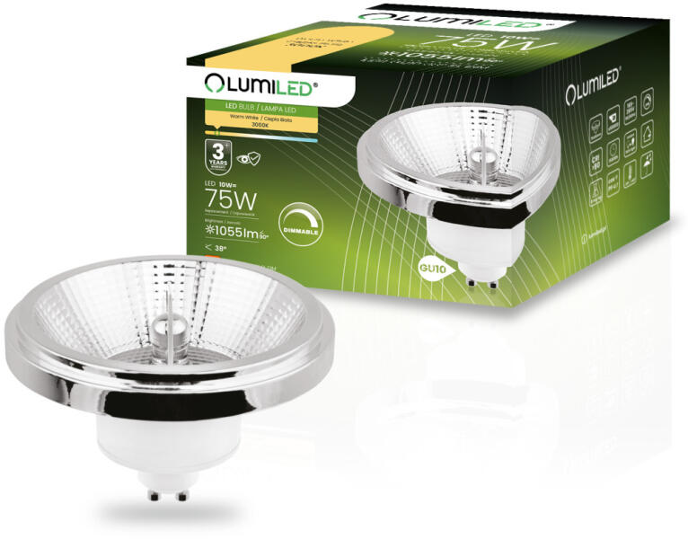 Lumileds LED izzó GU10 ES111 10W = 75W 1055lm 3000K Meleg 38° Ezüst LUMILED (LUMLEDR0310)