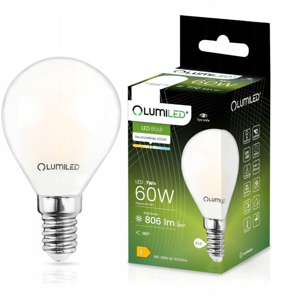 Lumileds LED izzó P45 E14 7W = 60W 806lm 4000K Semleges 360° Izzószál Tejes LUMILED