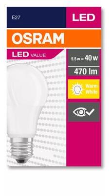OSRAM LED izzó, E27, gömb, A60, 5W, 470lm, 2700K (MF), OSRAM "Value (OLEDE2702) - webpapir