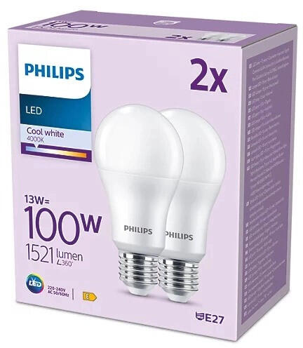 Philips 2x LED izzó készlet E27 A67 13W = 100W 1521lm 4000K Semleges 180° PHILIPS (8719514451315)